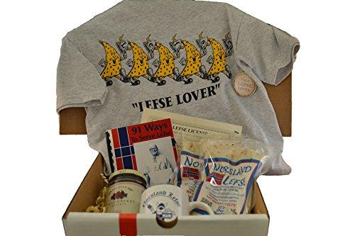 Includes: \"Lefse Lover\" T-shirt, gray; \"I\'m a Lefse Lover\" button; \"Parking for Lefse Lovers Only\" sign; 2 8-oz pkgs of Norsland Lefse; \"91 Ways to serve Lefse\" (book) by Merlin Hoiness; Lingonberry Preserves, 16 oz jar; Norsland Lefse 11 oz Ceramic Mug; Lefse License.