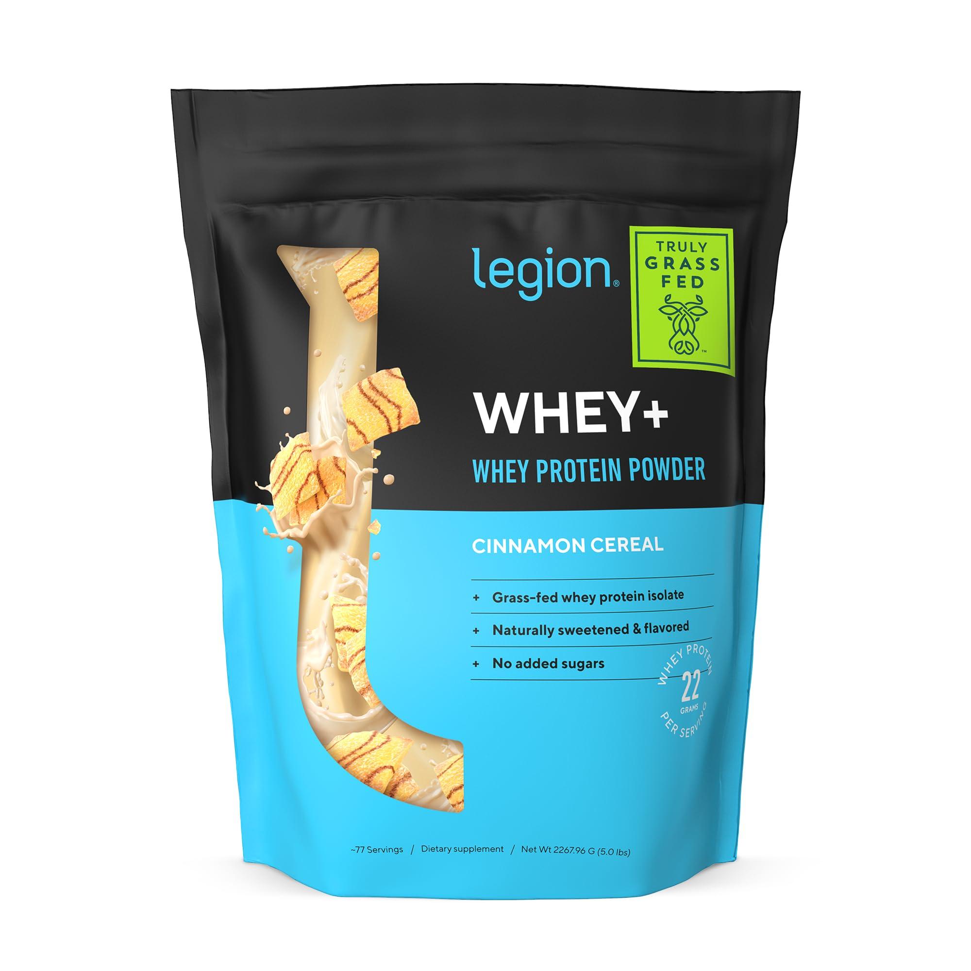 LEGION LEGION Whey+ Whey Isolate Protein Powder from Grass Fed Cows - Low Carb, Low Calorie, Non-GMO, Lactose Free, Gluten Free, Sugar Free, All Natural Whey Protein Isolate, 60 Servings (Cinnamon Cereal)