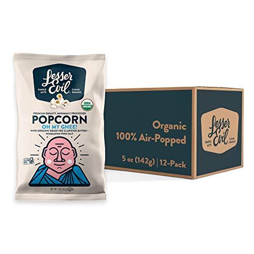 - We love the nutty, buttery flavor of ghee on popcorn. Ghee is known all over the world for its Aruyvedic properties, and we love the nutty, buttery flavor on popcorn