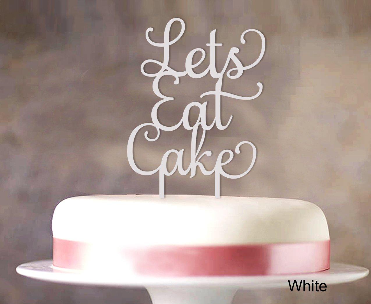 Printtoo Lets Eat Cake Birthday Cake Topper White Cake Topper Cake Decorations Color Option Available 5\"-7\" Inches Wide