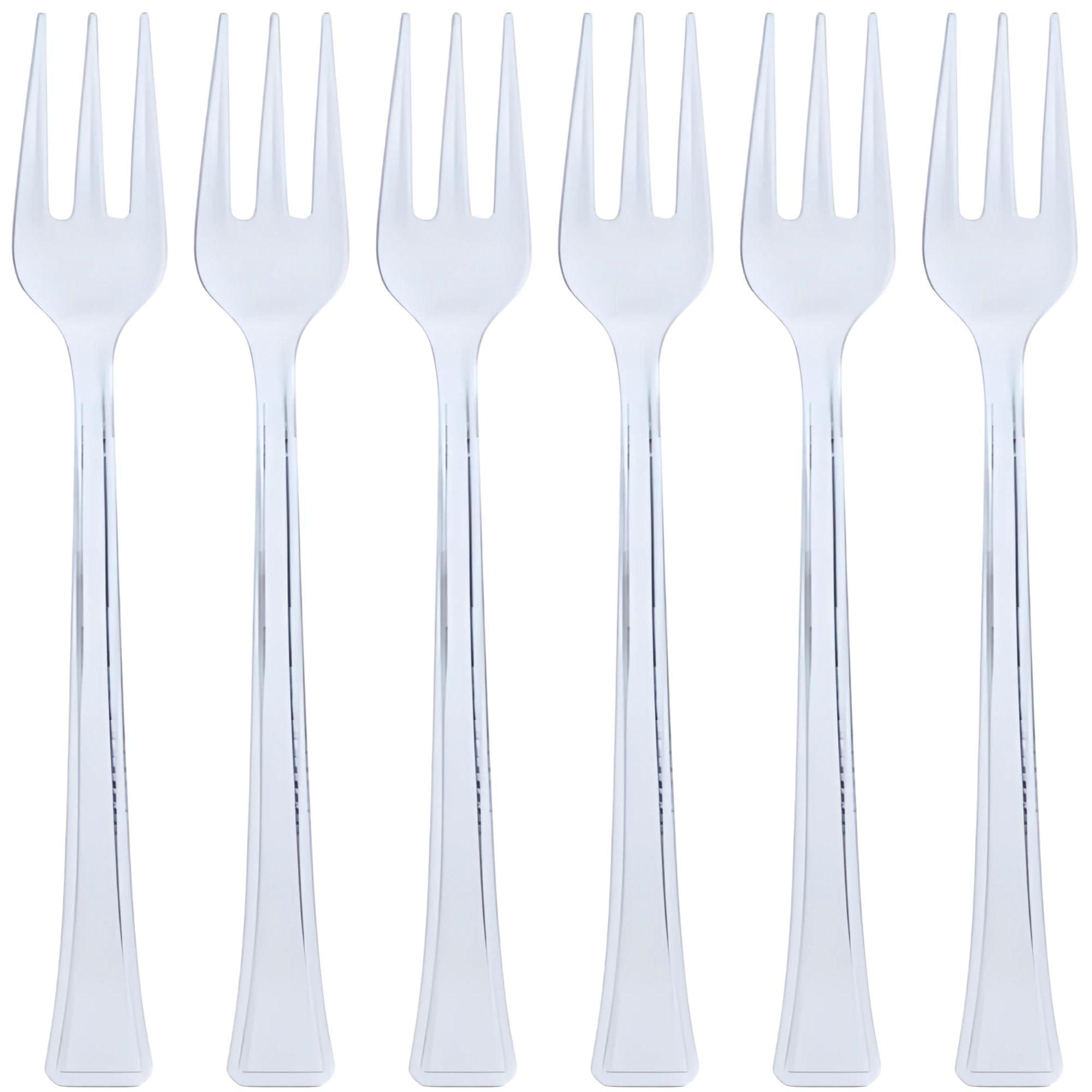 Lillian table settings mini clear plastic forks, 48 count. This item coordinates with our many mini entertainers. The mini cutlery comes in fork, spoon, or a mix of both in clear and polished silver.