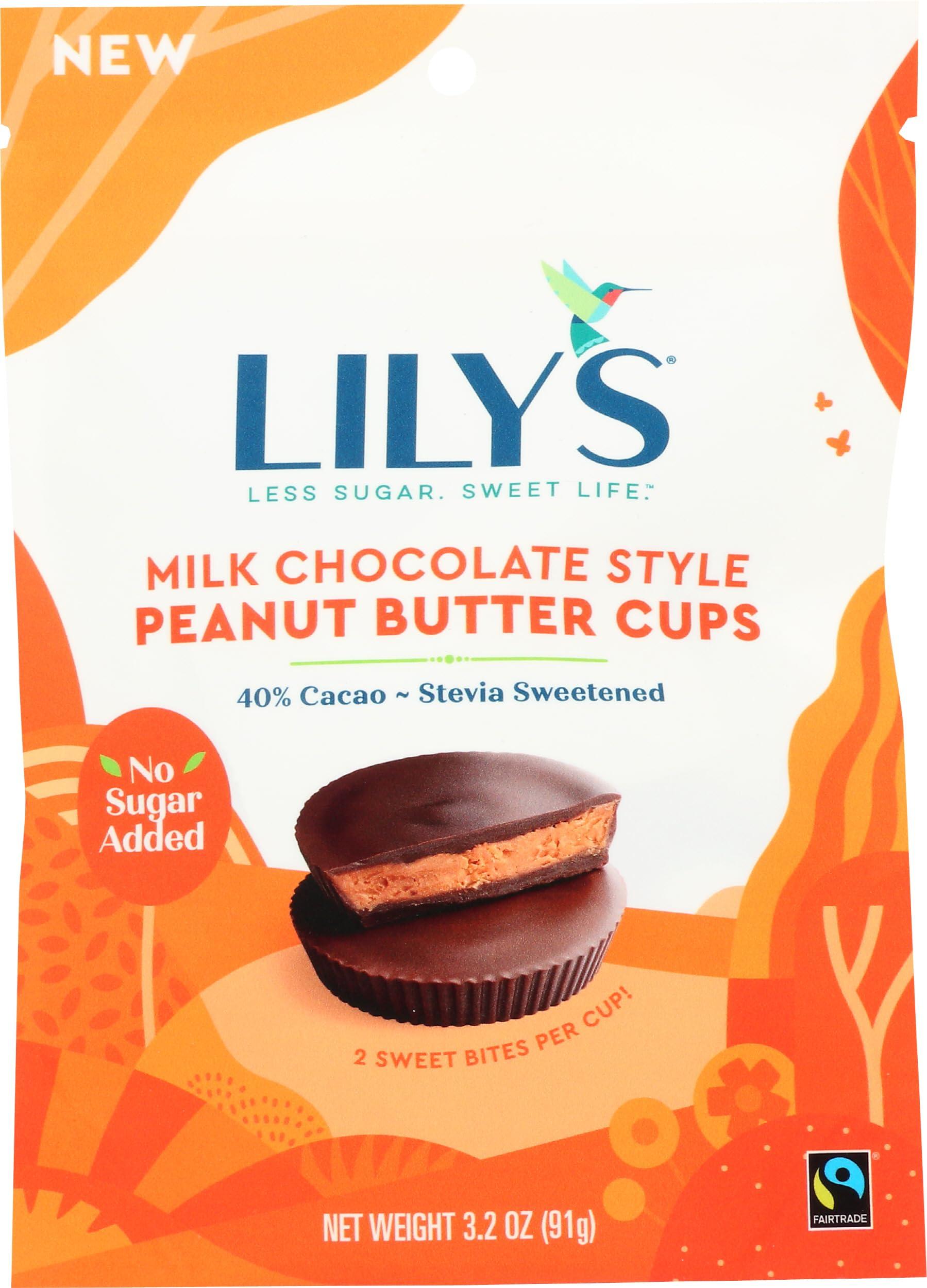 - Contains one (1) 3.2-ounce bag of LILY'S Milk Chocolate Style No Sugar Added Peanut Butter Cups