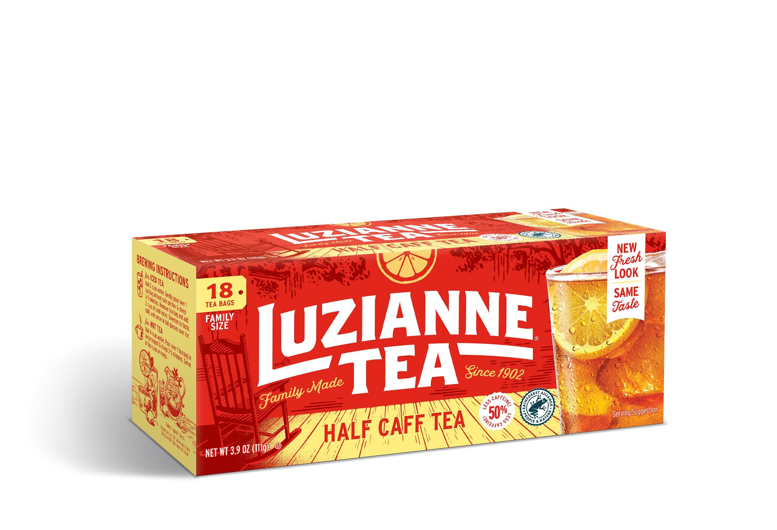 - Luzianne Half Caff Tea: Specially blended for iced tea. Featuring Orange Pekoe and Pekoe Cut Black Tea. Half-Caff tea bags are an way to make a delicious glass with all the flavor and less caffeine