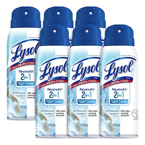 he new Lysol Disinfectant Spray 2 in 1 combines effective germ-killing and odor elimination. This product is designed to provide germ protection and can kill 99.9% of viruses and bacteria on hard surfaces, when used as directed. It kills 99.9% of the odor causing bacteria at the source and leaves an incredibly fresh scent in the air. It is perfect for usage all around the home, eliminating even the toughest odors in the bathroom, kitchen, around garbage cans and others. This spray eliminates odors and prevents mildew and mold on most household surfaces. Sanitizes hard surfaces and deodorizes the air. The Driftwood Waters scent is a crafted fusion of invigorating watery marine notes paired with a hint of aromatic woods.