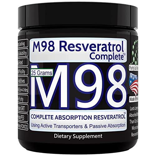 - Pure M98 Resveratrol Complete is now absorbed both passively and actively. Better than super micronized resveratrol and fully water soluble, no liposomes needed.