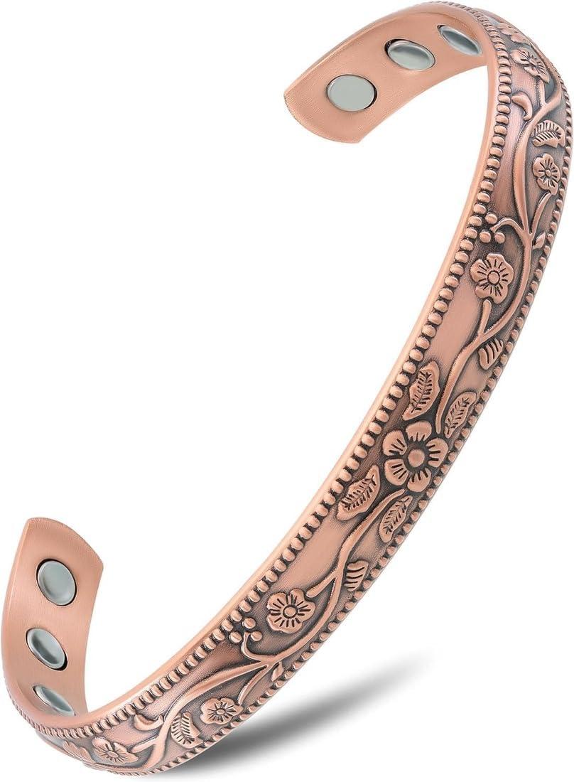 - Premium Quality: Handcrafted with 99.9% pure copper for enhanced properties and effectiveness. The copper bangle has an elegant antique finish and protective coating for advanced durability. Copper jewelry can naturally discolor or develop a green patina over time. This is not a defect, but rather a sign that this womens bracelet is made of genuine copper.