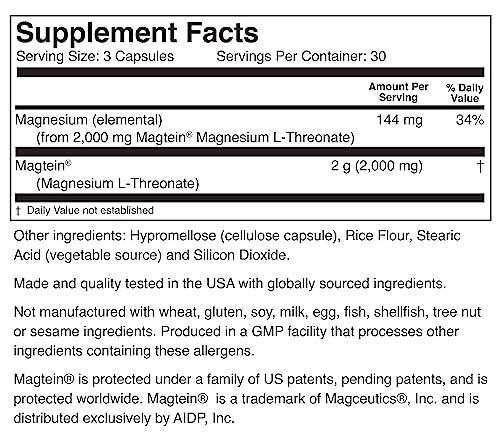 BIOACTIVE NUTRIENTS Magtein Magnesium L-Threonate - 90 Capsules - Magnesium L-Threonate Support Brain Health*