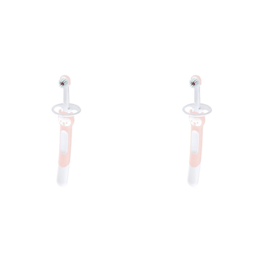 - PROMOTES ORAL CARE IN BABIES 5+ MONTHS: Training toothbrush cleans mouth and gums and helps establish an oral care routine as babies develop their first teeth. Includes one MAM Training Brush with soft, rounded bristles and one safety shield.