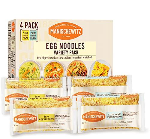 Premium enriched. Manischewitz egg noodles are simply delicious. These tasty noodles are made the old-time way-slow cooked for a fuller, richer flavor. We use no animal fats or artificial additives and use only the finest durum wheat. Egg noodles truly make a deliciously different side dish. This product is lactose free. Product of u.s.a.