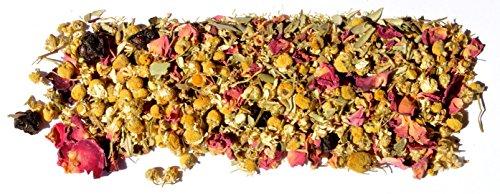 A gentle and bright chamomile tea with olive leaf and schizandra berry! Great iced or hot and Caffeine Free! Ingredients:Chamomile, Olive Leaf, Schizandra Berry, Rose Buds. Steep 1 Tablespoon in 8 oz cup of hot water (212 degrees) for 5 minutes. This is a loose leaf tea blend. You will need a steeper, tea ball or fold-over tea bag to prepare this tea.