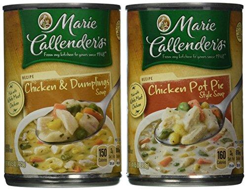 Marie's homestyle soup is made with the finest ingredients, in and EZ Dispense 8-Pack. Four cans each of Chicken & Dumplings and Chicken Pot Pie Style-with everything but the crust! Packaged for individual resale