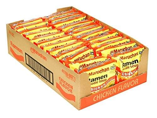 When you're too busy to prepare a full meal, turn to Maruchan Ramen Noodle Soup Chicken - 24 pk for a meal ready in only minutes. This affordable and filling option is ready to eat in just 3 minutes and features a savory chicken taste that can be easily dressed up with veggies, egg or meat.