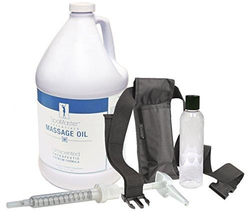 Our Light, Silky Formula washes out easily from fabrics, leaving your sheets and towels looking their best! In fact, recent comparison studies show that our oil and lotion washed out more clearly and completely than any other oils tested! Key Ingredients include Coconut Oil, An Amazing Deep Moisturizing Oil for ALL skin types. A non-irritant lubricator & a great carrier for essential oils! Grape Seed Oil, Contains antioxidants and anti-inflammatory properties, which are great for promoting skin health. Sunflower Oil, Naturally High in Vitamins A, D, & E. The thin texture allows the skin to absorb it very quickly. Sesame Oil, Rich in antioxidants, aids in removing toxins from your skin. Kit Includes: Adjustable Waist Holster, Transfer pump, and convenient 8 oz session bottle.