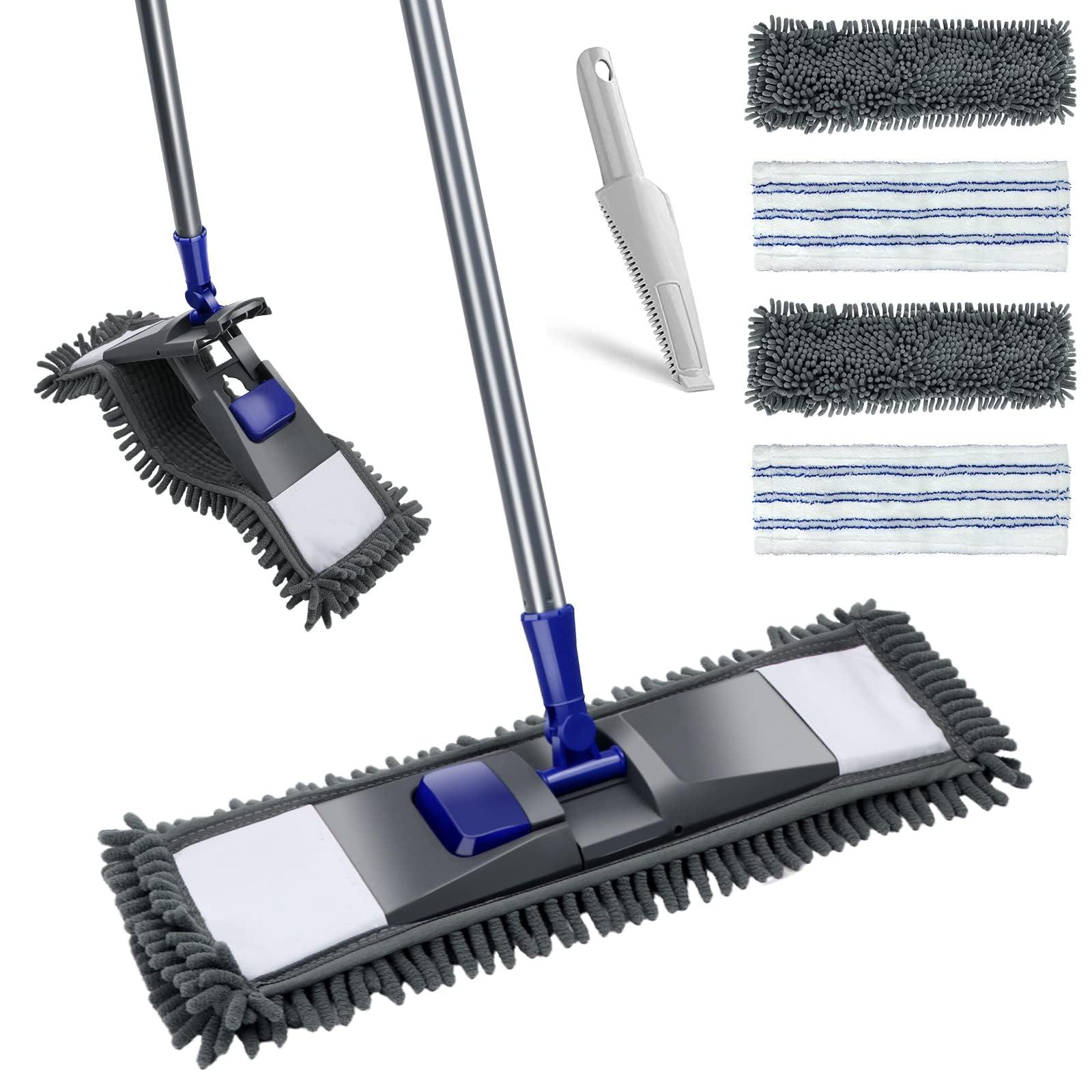 - High Efficiency Dust Mop:The 18 inch wide mop head can cover a larger area at one time, helping you to clean quickly and shorten the cleaning time, avoiding the fatigue caused by long-term cleaning. And this flat mop is equipped with 2 different material mop pads, which can be used for wet cleaning or as a dry mop for dust removal.