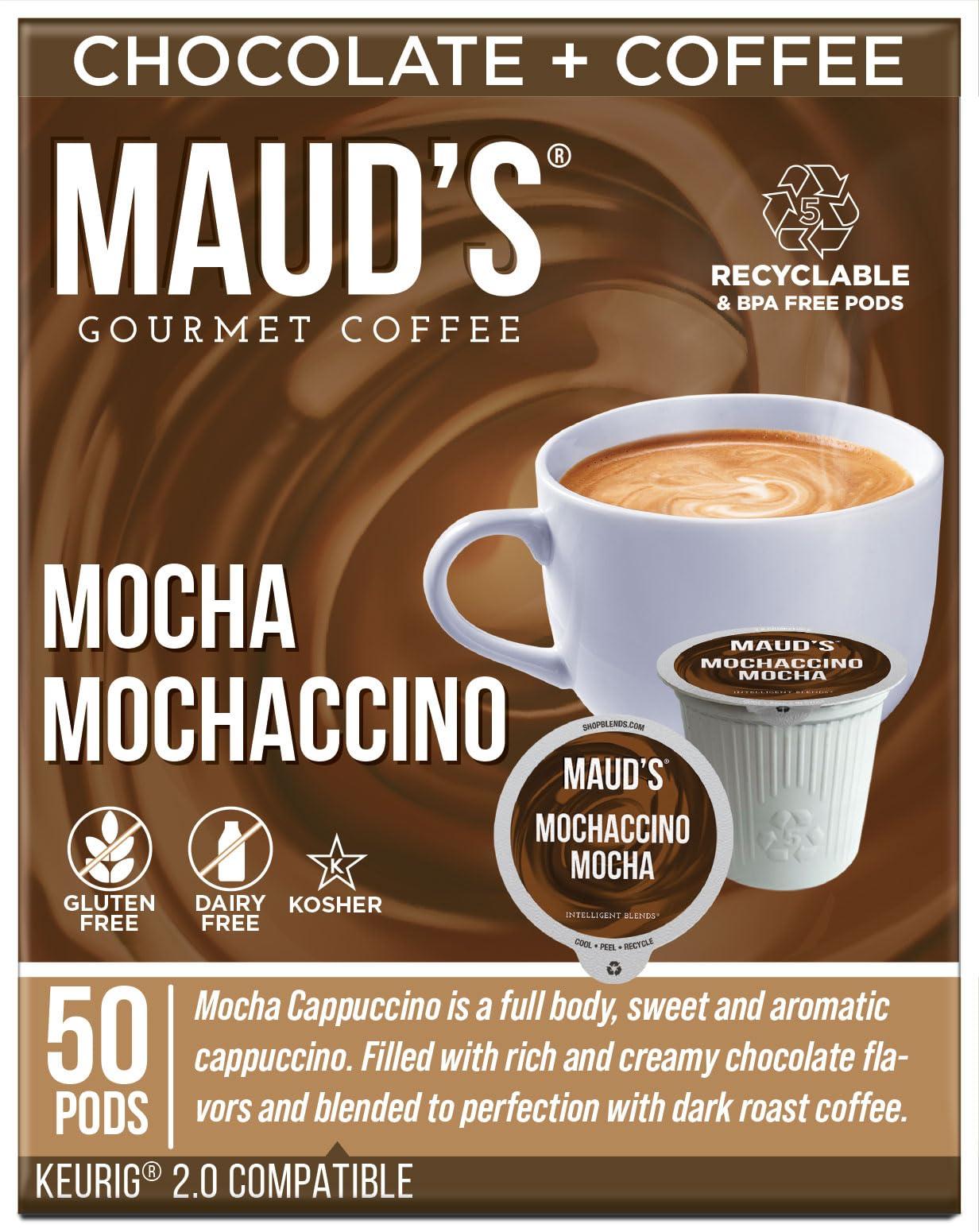 Maud\'s Chocolate Mocha Cappuccino Coffee Pods, 50 ct | Mochaccino Mocha Flavor | 100% Arabica Coffee | Solar Energy Produced Recyclable Pods Compatible with Keurig K Cups Maker