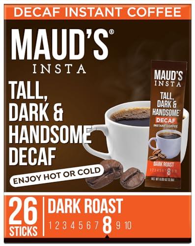 - [Flavorful Decaf Dark Roast Blend]: Maud's "Decaf Tall, Dark & Handsome" Coffee delivers a full bodied, providing a silky texture and sweet aroma that carries notes of toasted nuts. This is our most popular and world-renowned decaffinated dark roast coffee blend!