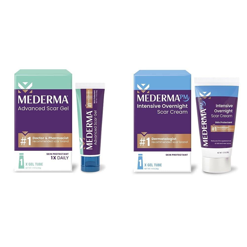 - TREATS OLD AND NEW SCARS: Mederma Advanced Scar Gel is the first 1x daily topical gel formulated to reduce the appearance of old and new scars from acne, burns, injury or surgery
