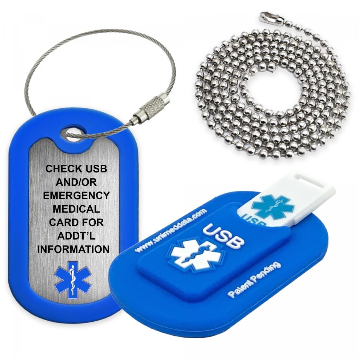 - Wear as a medical alert dog tag pendant or use it to carry along with your keys. Includes both a 27 stainless-steel ball bead chain and a locking 6" stranded wire loop. This item can be worn discreetly around the neck or carried out of the way in your pocket. Either way, rest assured that emergency responders are trained to look for these emergency medical alert identifying items.