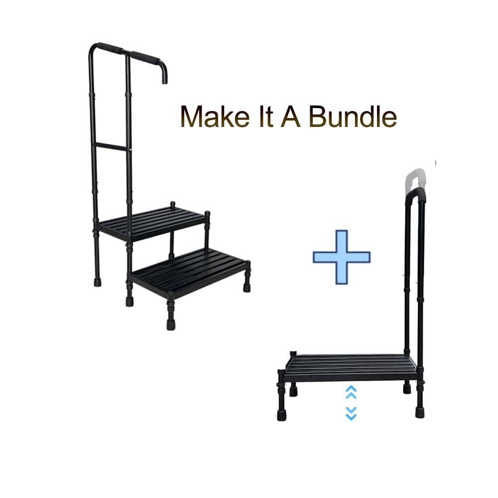 - Flexible & AdjustableStep stool with railing is adjustable and easy to set up. You can freely adjust the height of handle from 40 to 51.2 inches with metal buttons. Depending on the height of car, step platform is adjustable via E-clip.