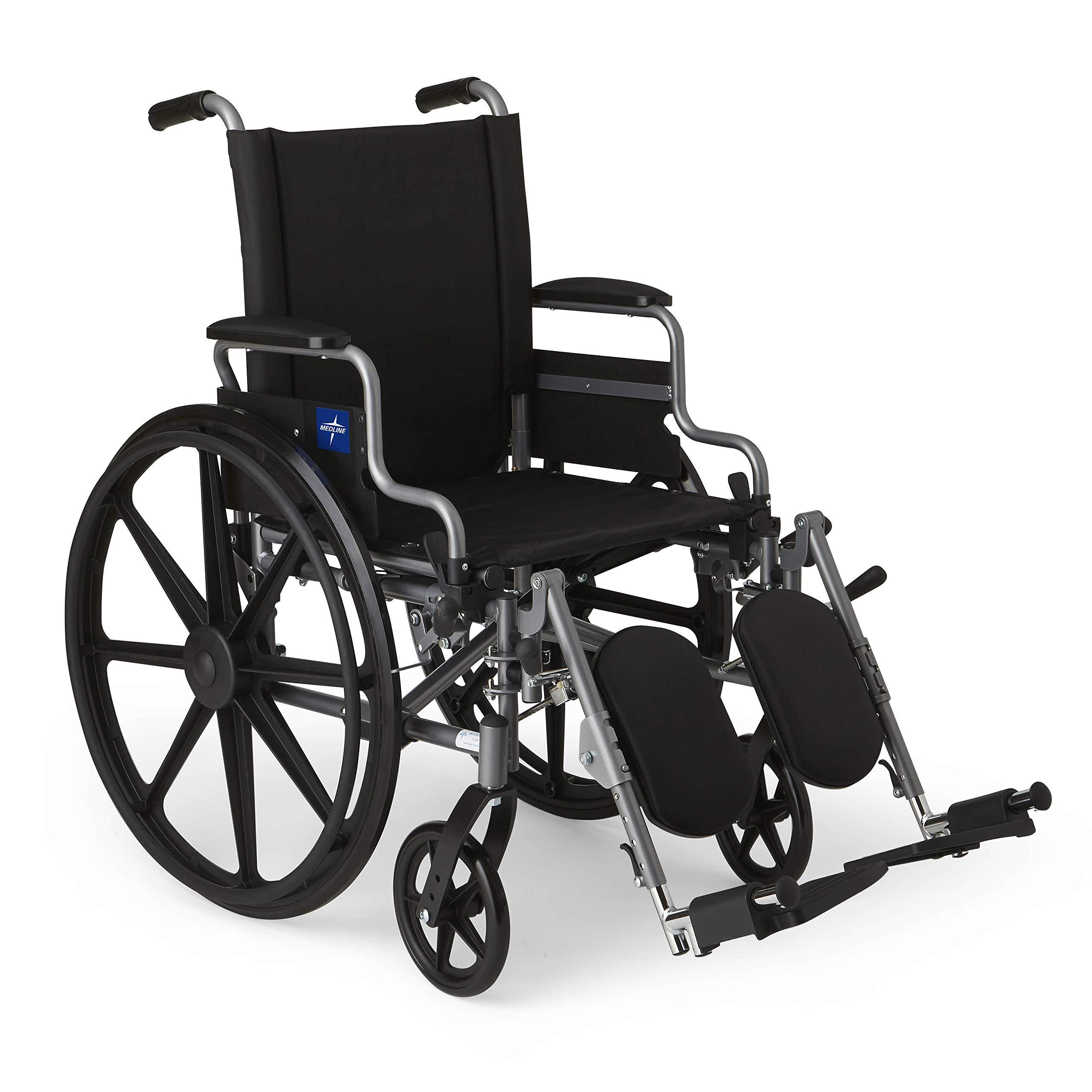 Rely on the Medline K4 Basic Lightweight Wheelchair for comfort, durability, and adjustability. This expertly crafted mobility aid features a 300 lbs. weight capacity to fit a range of users. The wheelchair is also designed with a dual axle, making it hemi-height adjustable to accommodate users of different heights. The wheelchair is designed with desk-length arms, making it easy to pull up to tables or desks, enhancing your accessibility and independence. The wheelchair's comfort is further enhanced by its nylon upholstery, which is not only comfortable, but also easy to clean and maintain. The Medline K4 Basic Lightweight Wheelchair is built to last, featuring a TIG-welded frame for enhanced durability. The frame is finished with a gray powder-coat, providing an extra layer of protection against wear and tear. To ensure a smooth and effortless ride, the wheelchair is fitted with solid flat-free tires. These tires are designed to roll smoothly over various surfaces, making it easy to navigate both indoor and outdoor environments. With the Medline K4 Basic Lightweight Wheelchair, you can enjoy a comfortable, durable, and adjustable mobility aid that meets your specific needs.