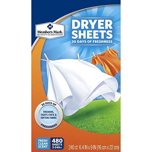Soften fabrics, reduce static cling and give your clothes and linens a fresh, clean scent with Member's Mark Fabric Softener Sheets. These dryer sheets give you 30 days of freshness, making them a great way to care for spare linens and large, diverse wardrobes. The twin pack includes a total of 480 sheets.
