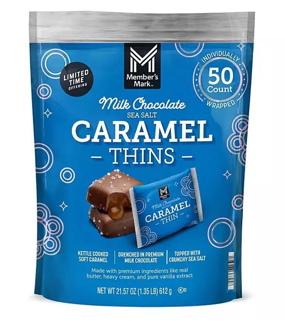 From the velvety texture to the divine taste, every bite is a testament to our commitment to excellence. Indulge in the sheer pleasure of Member's Mark Milk Chocolate Sea Salt Caramel Thins. Rich, creamy milk chocolate that envelops a sumptuous caramel centre. A delicate sprinkle of sea salt creates a perfect balance.