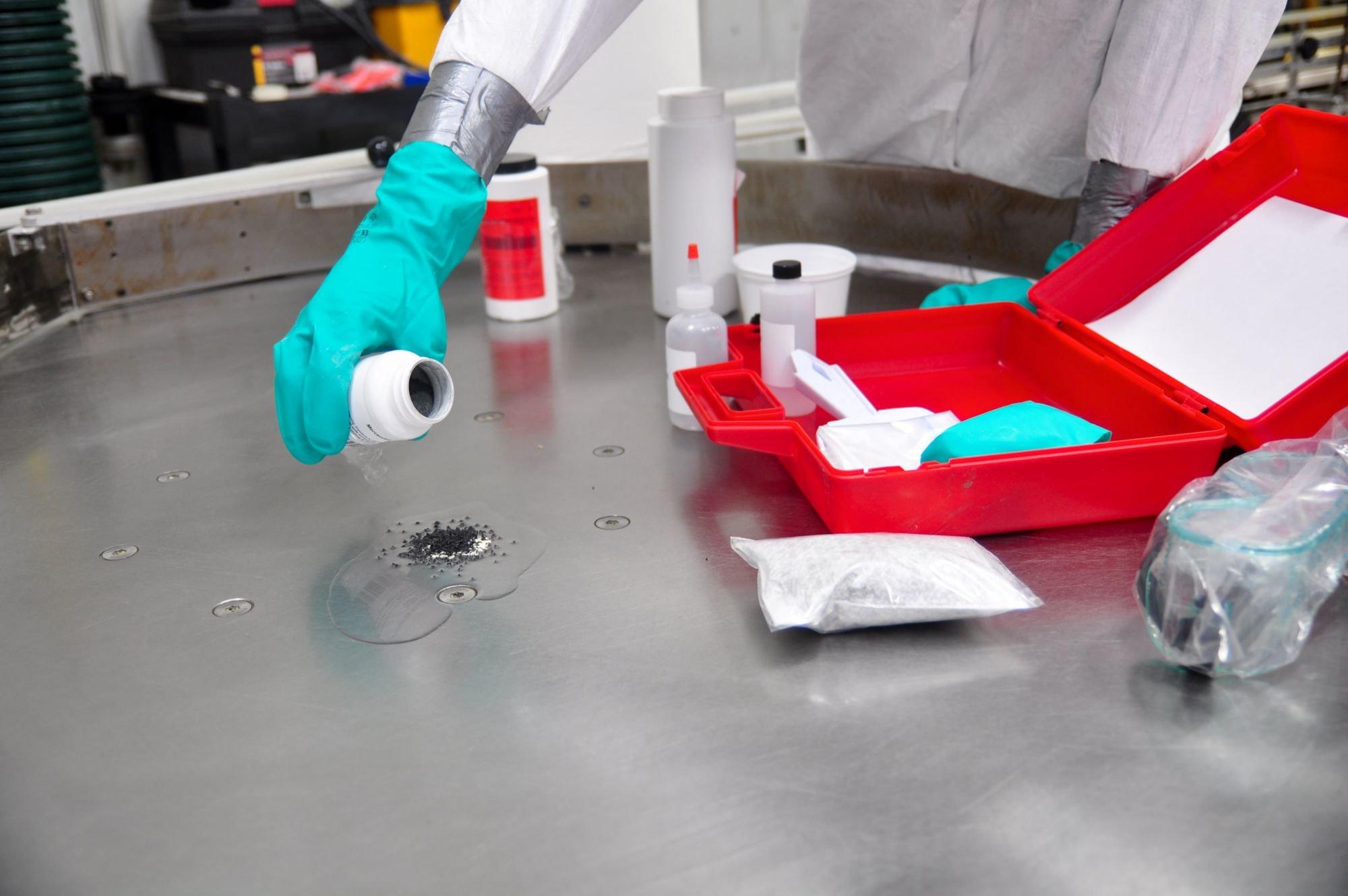 'Mercury Vapor Absorbing Powder, Application Amalgamates Mercury to Prevent Mercury Vapor Emissions, Size 10 oz., Includes Powder, Standards Follows The Guidelines of OSHA Hospital Recommendations'