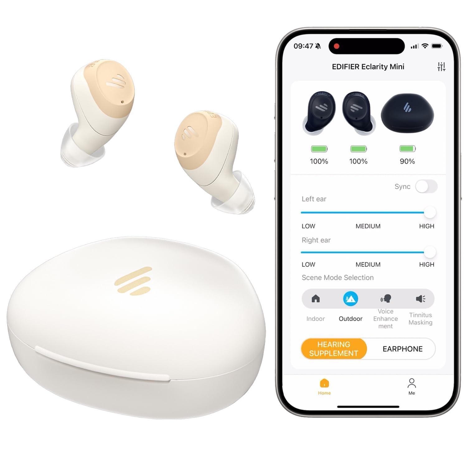 - Invisible, Comfortable, and Easy to Use These lightweight hearing aids weigh only 2 grams and fit snugly in your ear for a discreet look and all-day comfort. They look like TWS Bluetooth earbuds, not traditional hearing aids. The soft silicone buttons make it easy to control everything with just a gentle press. You can adjust the volume, switch modes (like tinnitus masking through the app), and manage calls effortlessly