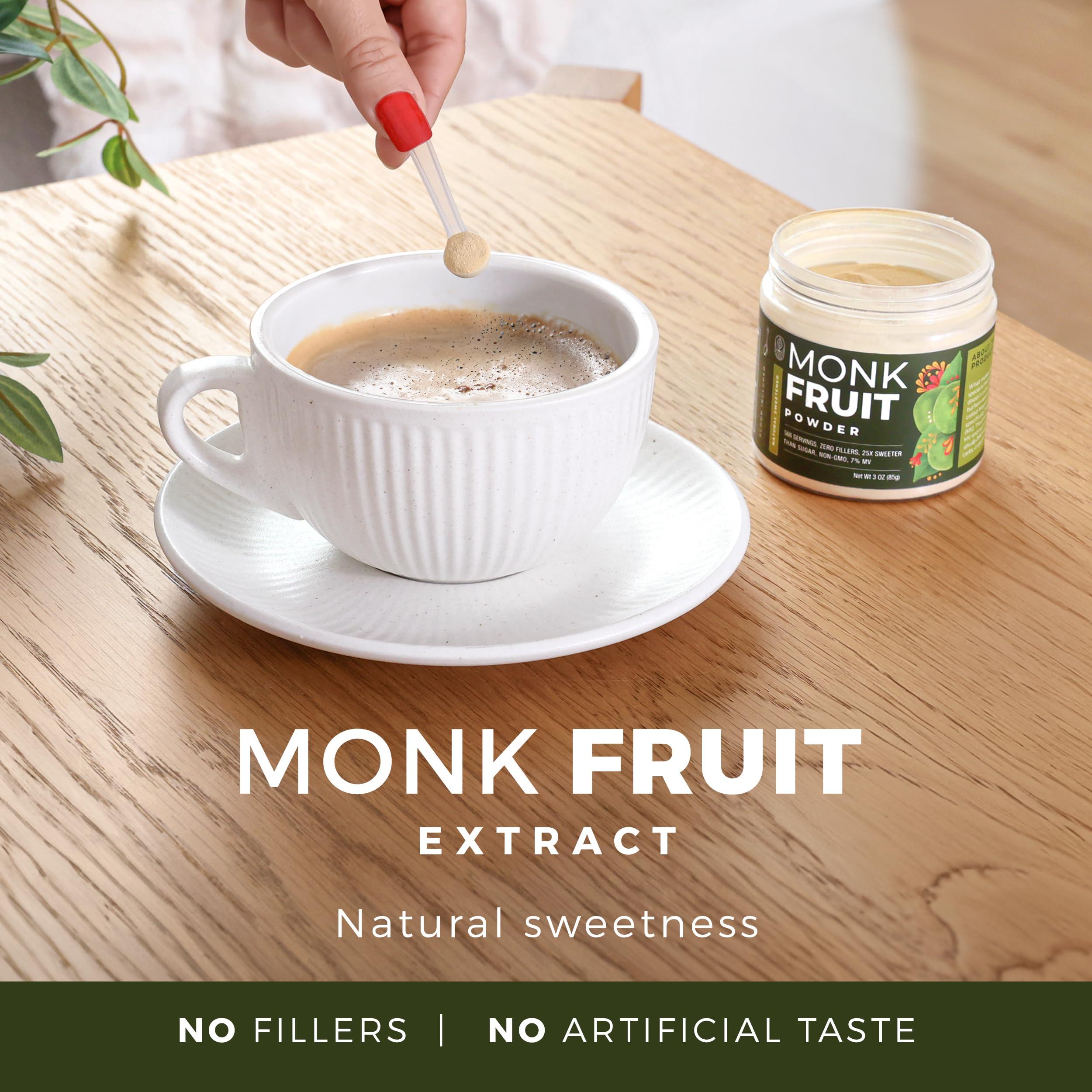 - COFFEE, TEA, & MORE: Our monk fruit extract works great on coffee, tea, sauces and dressings, oatmeal and cereals, smoothies, cocktails, and much more!