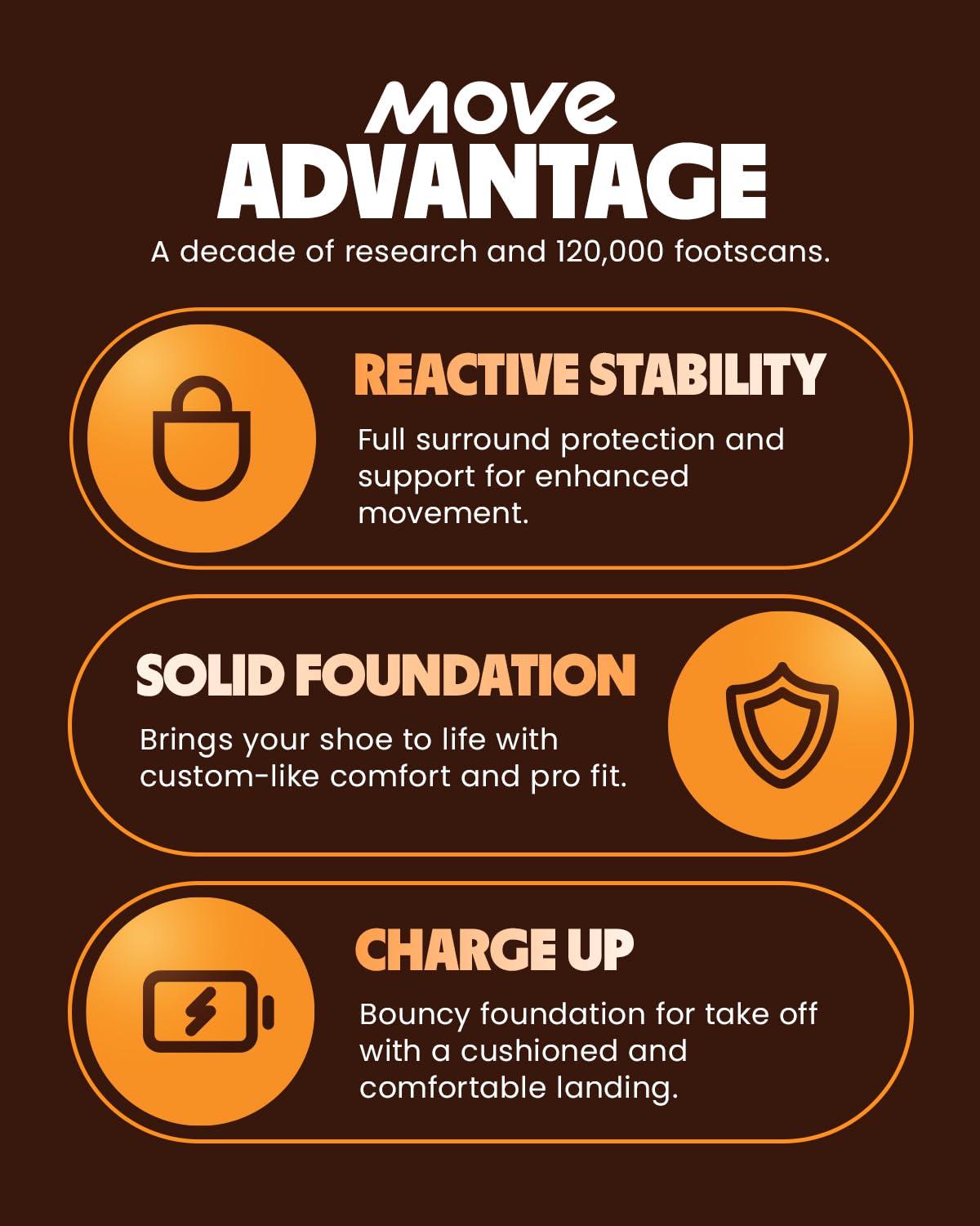- ULTIMATE COMFORT: Elevate any shoe to the pinnacle of comfort. Enjoy a rejuvenating experience with each step, thanks to our Move Recharge Foam that provides lasting comfort and reduces stress on your feet, knees, and back.