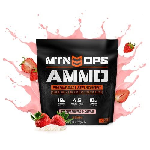 MTN OPS Ammo Protein Powder Meal Replacement Shake for Lean Muscle Building, Strawberries & Cream Flavor, 28 Servings