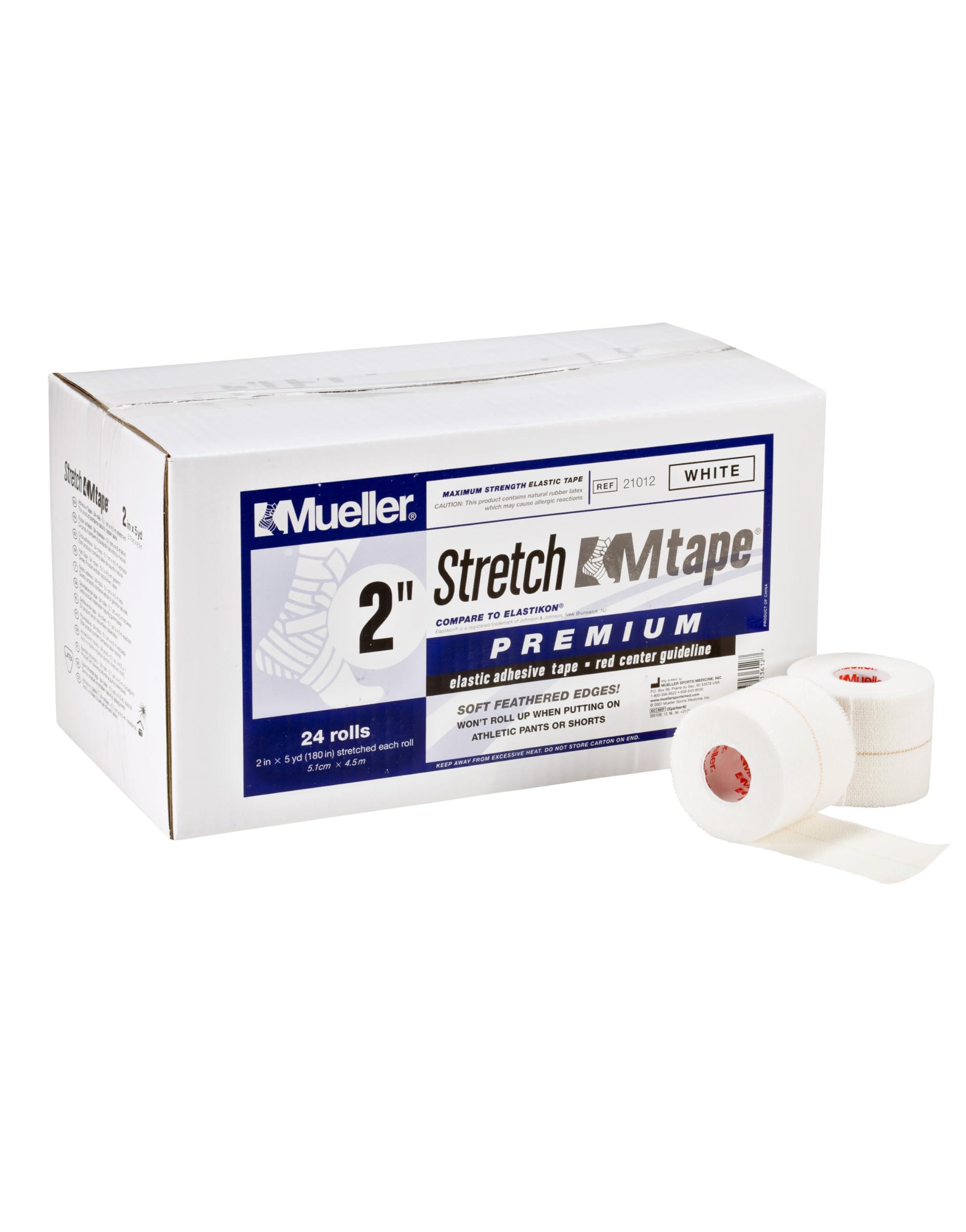 Introducing Mueller Stretch MTape Premium Rolls, your top-quality athletic tape solution for all sports medicine needs. Each 2" x 5 Yards roll offers easy tear technology for fast and efficient taping, perfect for support and compression. With high tensile strength and superior adhesion, it ensures durability and comfort. Its water-resistant design maintains grip during intense activities. Crafted from 100% hospital-grade cotton backcloth with zinc oxide-based adhesive, available in multiple colors. Trust Mueller, a leader in sports medicine for over 60 years, to help you heal, reduce pain, and elevate performance.