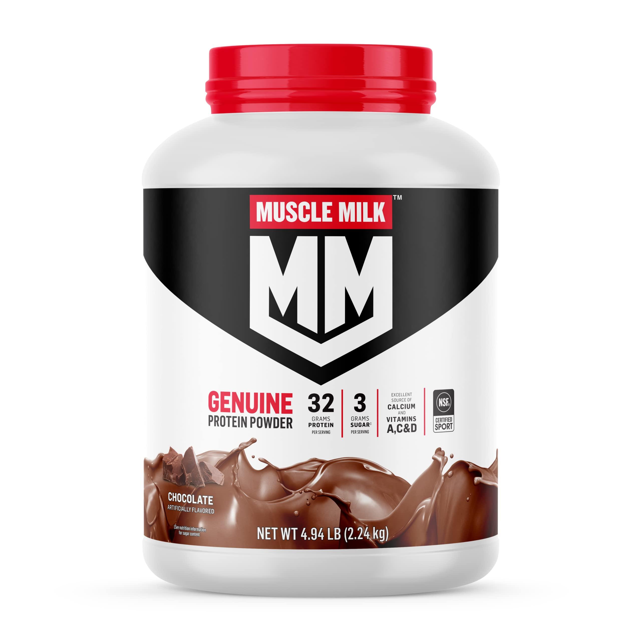 Muscle Milk Genuine Protein Powder, Chocolate, 4.94 Pound, 32 Servings, 32g Protein, 2g Sugar, Calcium, Vitamins A, C & D, NSF Certified for Sport, Energizing Snack, Packaging May Vary