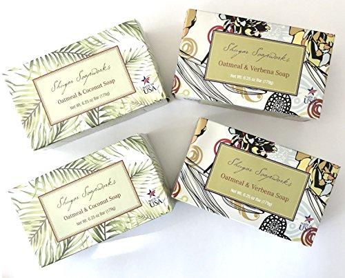 OATMEAL & VERBENA One of our most popular soaps, Oatmeal & Verbena blends the crisp citrusy floral scent of verbena with the finely ground oatmeal flakes. Calming and cool to the senses, this soap gently cleanses your skin leaving it smooth and toned. Delightfully refreshing, our triple-milled Oatmeal & Verbena is a delightful addition to your skin care routine. Finely milled oatmeal flakes may help soften and exfoliate your skin, while the fresh aroma of soothing herbs will transform an ordinary bath into an experience youll look forward to every day. OATMEAL & COCONUT One whiff of the cool scent of our Oatmeal & Coconut soap and youll be whisked away to a tropical paradise. Our triple milling process thoroughly blends finely ground oatmeal with the appealing coconut scent for a rich, creamy lather and an aroma that lasts throughout the life of the bar. After a long, taxing day, why not treat yourself and slip into a warm bath with our Oatmeal & Coconut soap. Youll emerge re-energized and ready to take on whatever comes next!