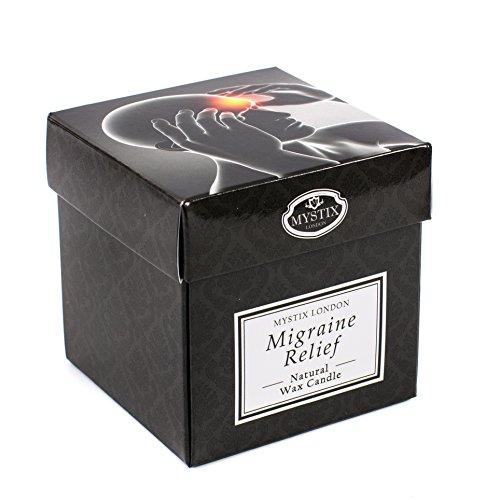Migraine Relief Candle The Migraine Relief candle is designed to provide relief, aid circulation and reduce stress. Mystix Candles are hand poured candles made in the UK Using 100% natural Soya wax, cotton candle wicks and pure premium essential oils Each candle burns approximately 10 hours Warnings: Do not burn near draughts and do not move candle when lit. Keep candlewick trimmed to between 0.5cm and 1cm. When candle is lit, place on a heat resistant mat. Burning Instructions: Keep candle free of any foreign materials including matches and wick trimmings. Only burn candle on a level fire resistant surface.