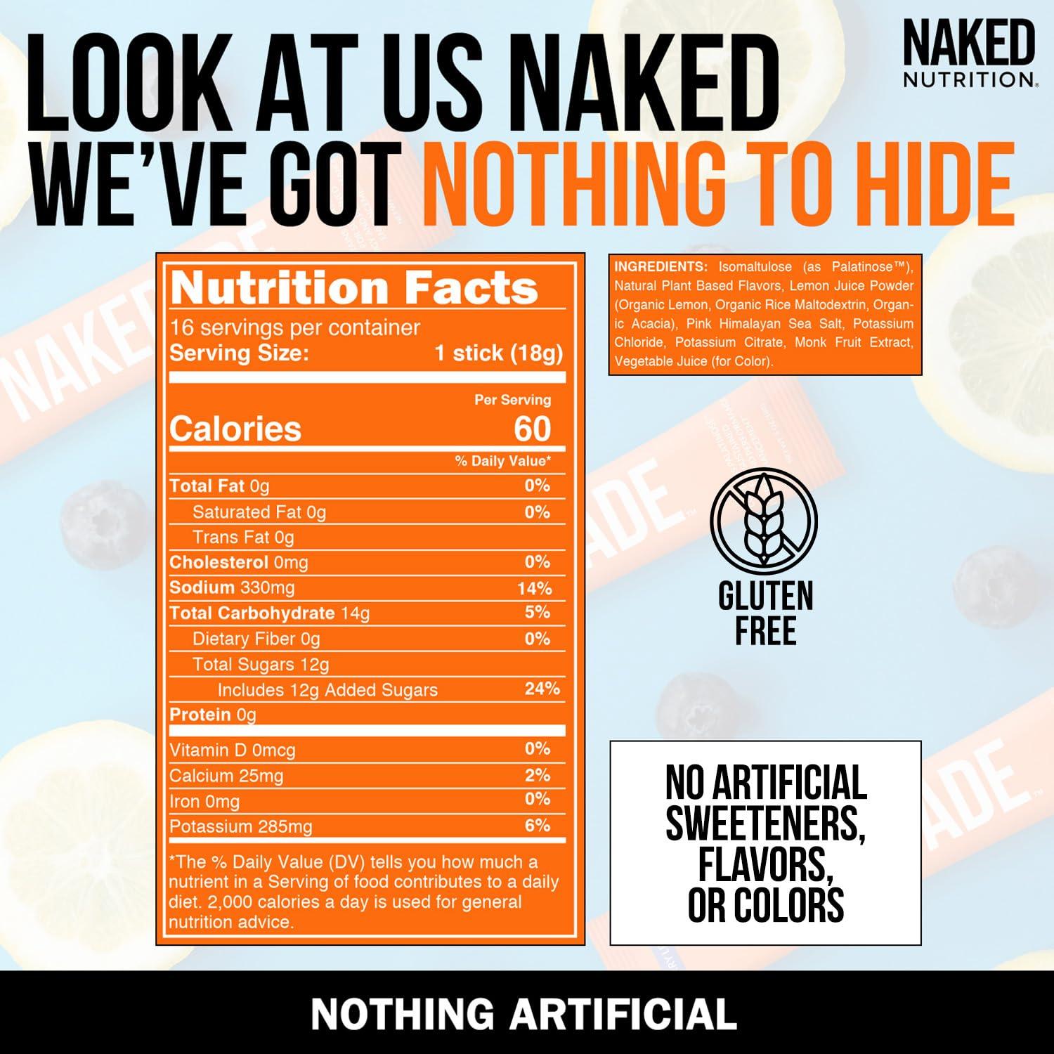 - ELECTROLYTES AND SMART CARBS: Nakedade contains PalatinoseTM, a smart carbohydrate derived from sugar beets. Get sustained clean energy with no sugar crash.