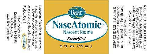 Baar Products has over 25 years of experience electrifying Iodine. The quality that separates NascAtomic from all other iodine products is that the diatomic bond is broken, liberating the Iodine element in an atomic or nascent state. This is done by the process of electrifying the solution which allows the Iodine atoms to each keep one of the two electrons that had made up the covalent bond. This is known as homolytic cleavage and creates an electromagnetic charge to the Iodine. That means your body is able to use it more efficiently. In this form, the body can readily assimilate and use the Iodine and convert it to be easily used by the body. The Iodine being in the atomic state was the reason it was called Atomidine or Atomic Iodine. Tested Free of Radio-Activity.
