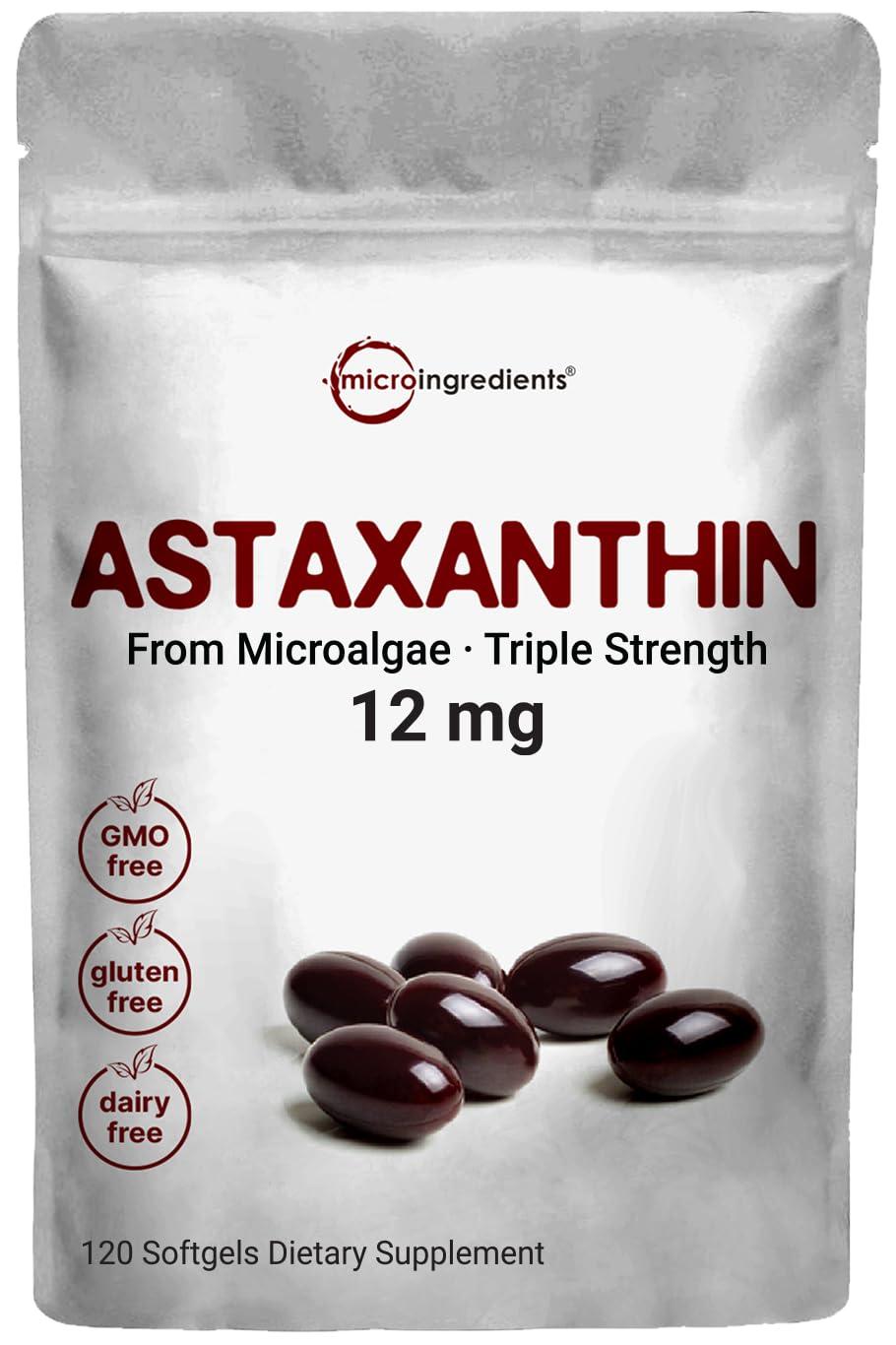 - Micro Ingredients offers max strength Astaxanthin softgels, offering a high potency of 12mg natural astaxanthin per serving. Each one-a-day softgel provides up to a 120-day supply.