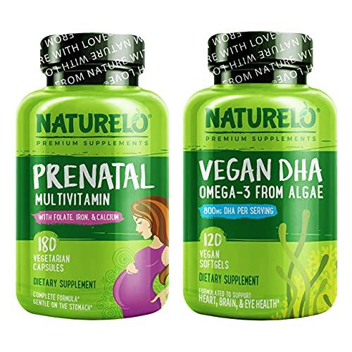 Nutrients from Nature: Our Vegan DHA Omega-3 is plant-based from Marine Algae. Our Prenatal Supplement is made with plant-based vitamins and minerals such as Vitamin D3 from Lichen, Vitamin E from Sunflower, Iodine from Kelp, and Calcium & Magnesium from Marine Algae.