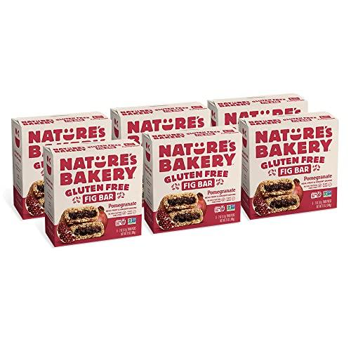 - SIZE Contains 6 Boxes of 6 twin packs (36 Twin Packs; 2 x 1 oz. snack bars per twin pack) of Nature's Bakery Pomagranate Flavored Gluten Free Fig Bars