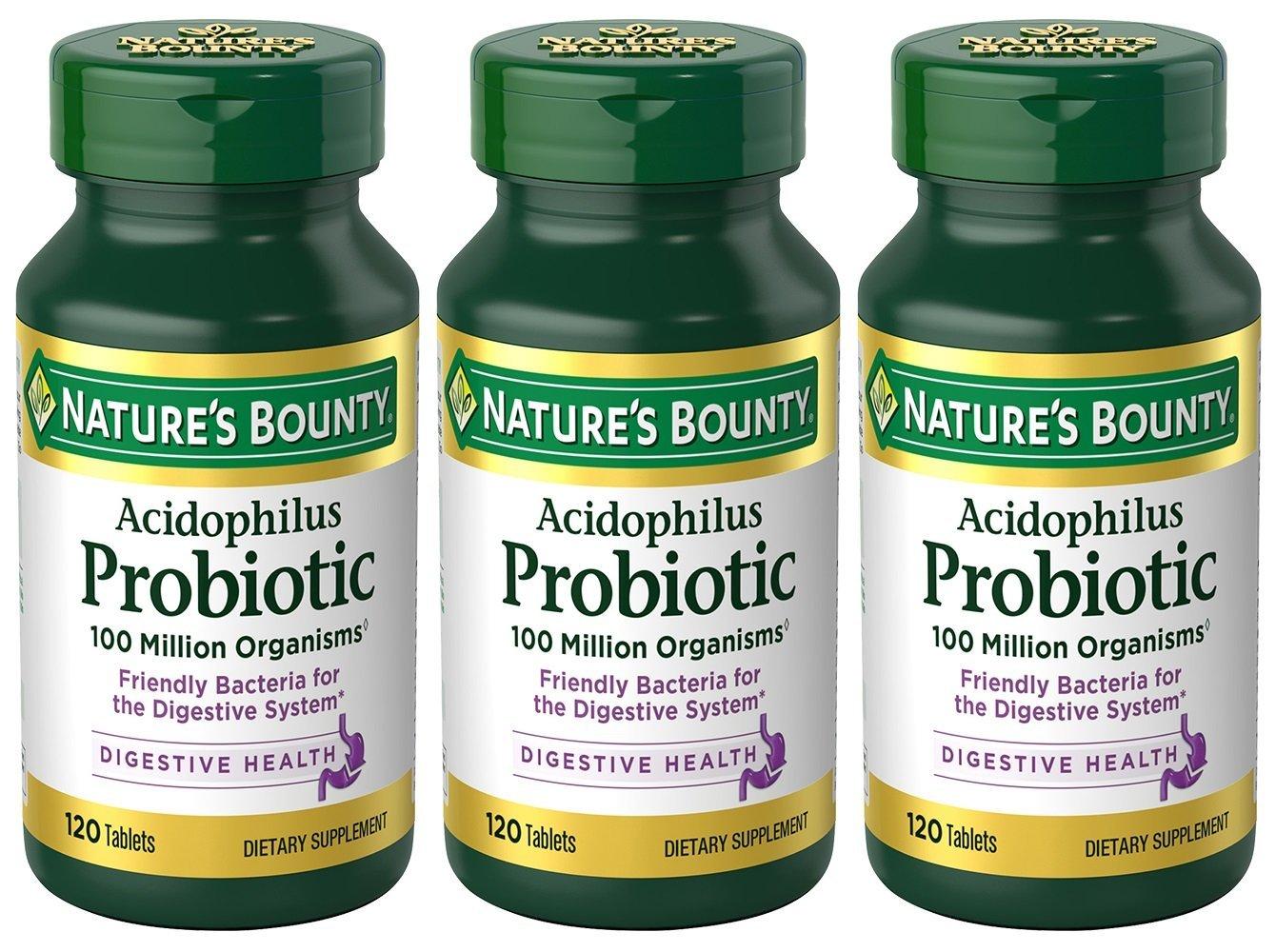 Nature's Bounty Probiotic Acidophilus, 360 Tablets (3 X 120 Count Bottles)