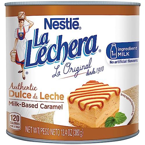 Nestle La Lechera Dulce de Leche Milk-Based Caramel adds a sweet flavor and creamy texture to your favorite desserts, drinks, and snacks. This authentic, rich, creamy milk-based caramel is made with milk as the first ingredient and no artificial flavors. La Lechera caramel comes in a sealed can to maintain freshness until you're ready to add to your favorite snack or treat. Add Dulce de Leche to make decadent desserts, such as flan or cheesecake. Top fresh fruits or waffles with La Lechera milk-based caramel, or add it to coffee for creamy sweetness. Store Nestle Dulce de Leche at room temperature and refrigerate after opening.