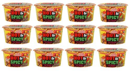 Nissin Bowl Noodles HOT & Spicy SHRIMP Flavor Microwavable and Spoonable Noodles & Soup with Og Trans FAT for Best in Ramen Instant Noddle Soup- 12 Pack of 3.27 Oz Cups