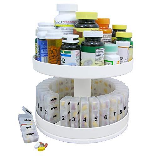 - Keep your counters clean and organized with a Revolving medicine center to keep your pills at your fingertips while saving on space.