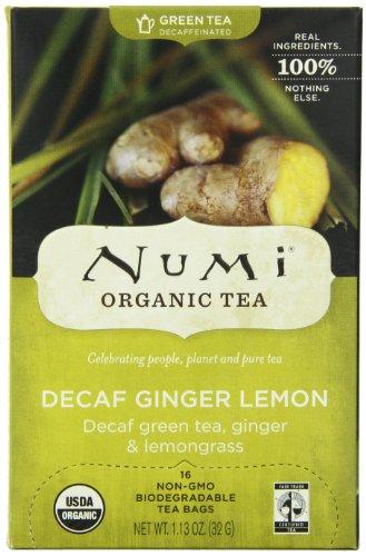 - DECAF GINGER LEMON GREEN TEA: Now with lemon verbena, lemongrass, and sweet licorice. Numi's Decaf Ginger Lemon deliciously blends organic sweet citrusy lemongrass and invigorating ginger into an organic decaffeinated green tea