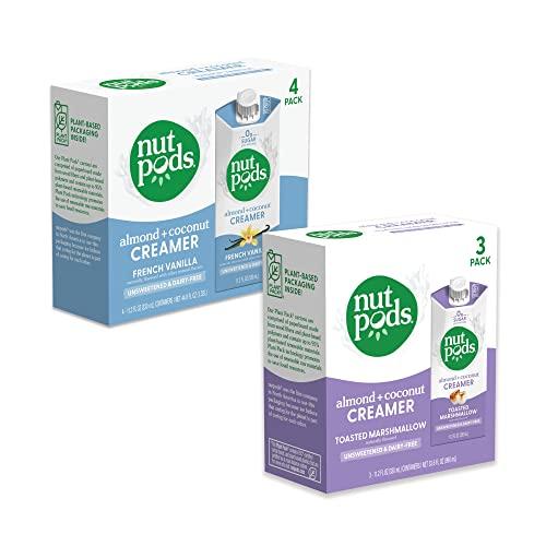 nutpods Non Dairy Coffee Creamer Bundle: a 4 pack of French Vanilla creamer and a 3 pack of Toasted Marshmallow creamer.