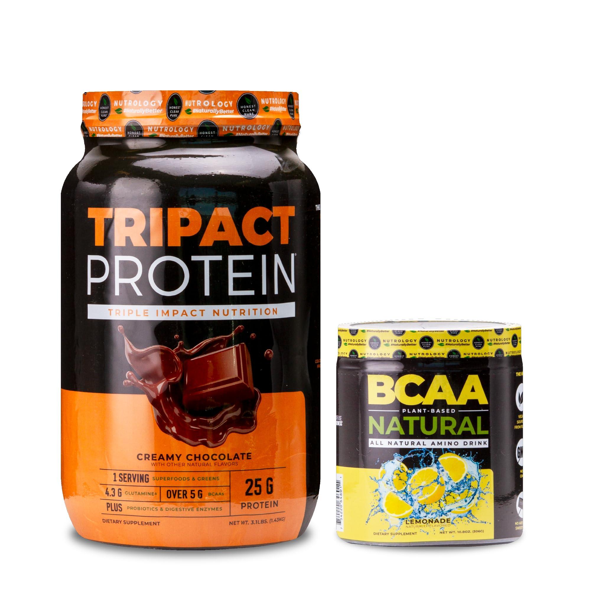 - Triple Impact Chocolate Protein Powder: TRIPACT Protein offers a premium protein blend sourced with high quality grass fed whey protein powder concentrate and isolate combined with pea protein powder, rice protein powder, and a dynamic profile of Essential Amino Acids including BCAAs.