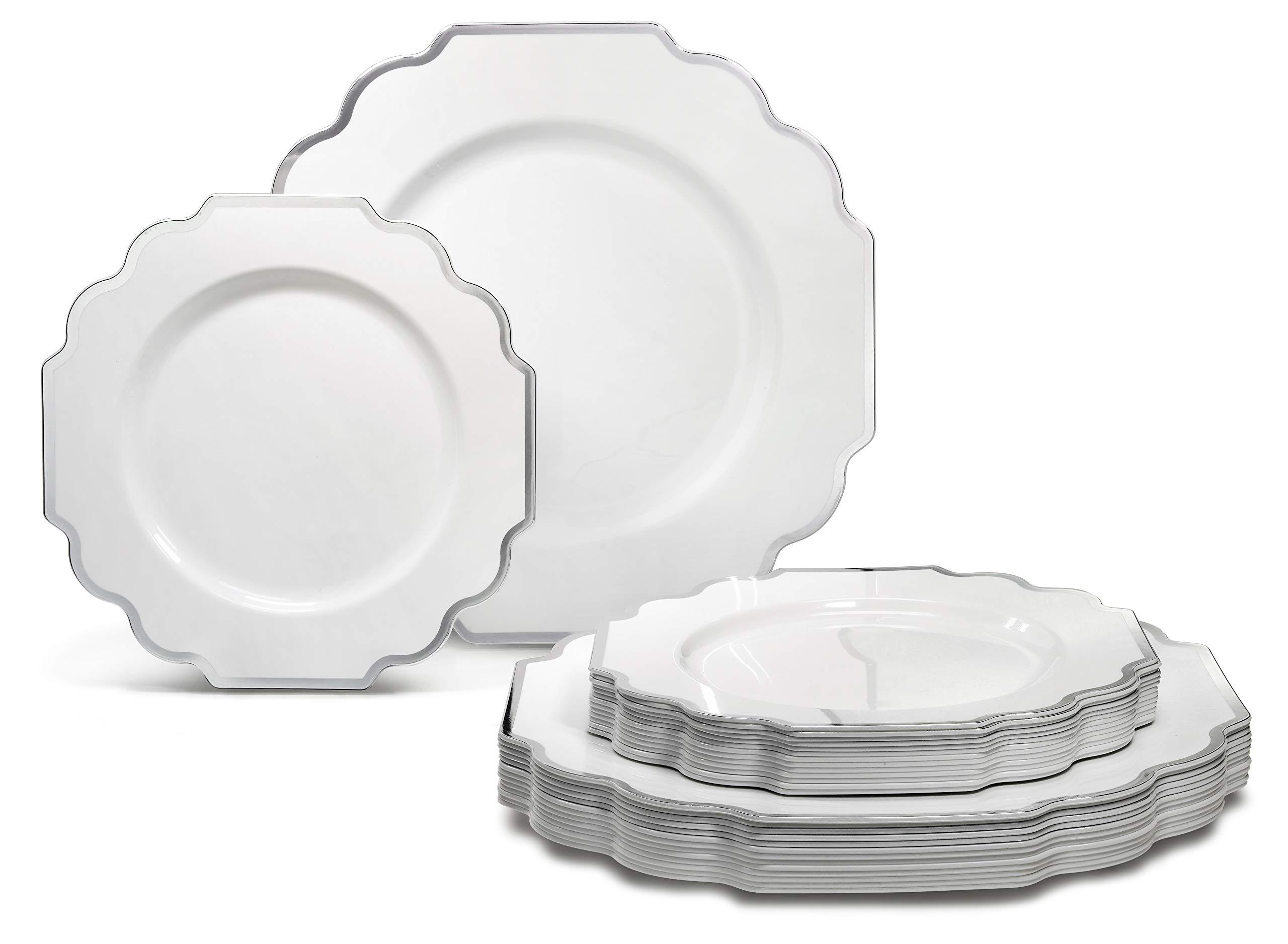 - Premium Disposable Vintage Plastic Plates. Looks like real China. Add a touch of elegance and to your next party or dinner. Where you want an elegant and fancy look with the convenience of disposable.