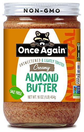 Once Again Once Again Natural Creamy Almond Butter, 16oz - Lightly Toasted - Salt Free, Unsweetened - Gluten Free Certified, Peanut Free, Vegan, Kosher, Paleo - Glass Jar
