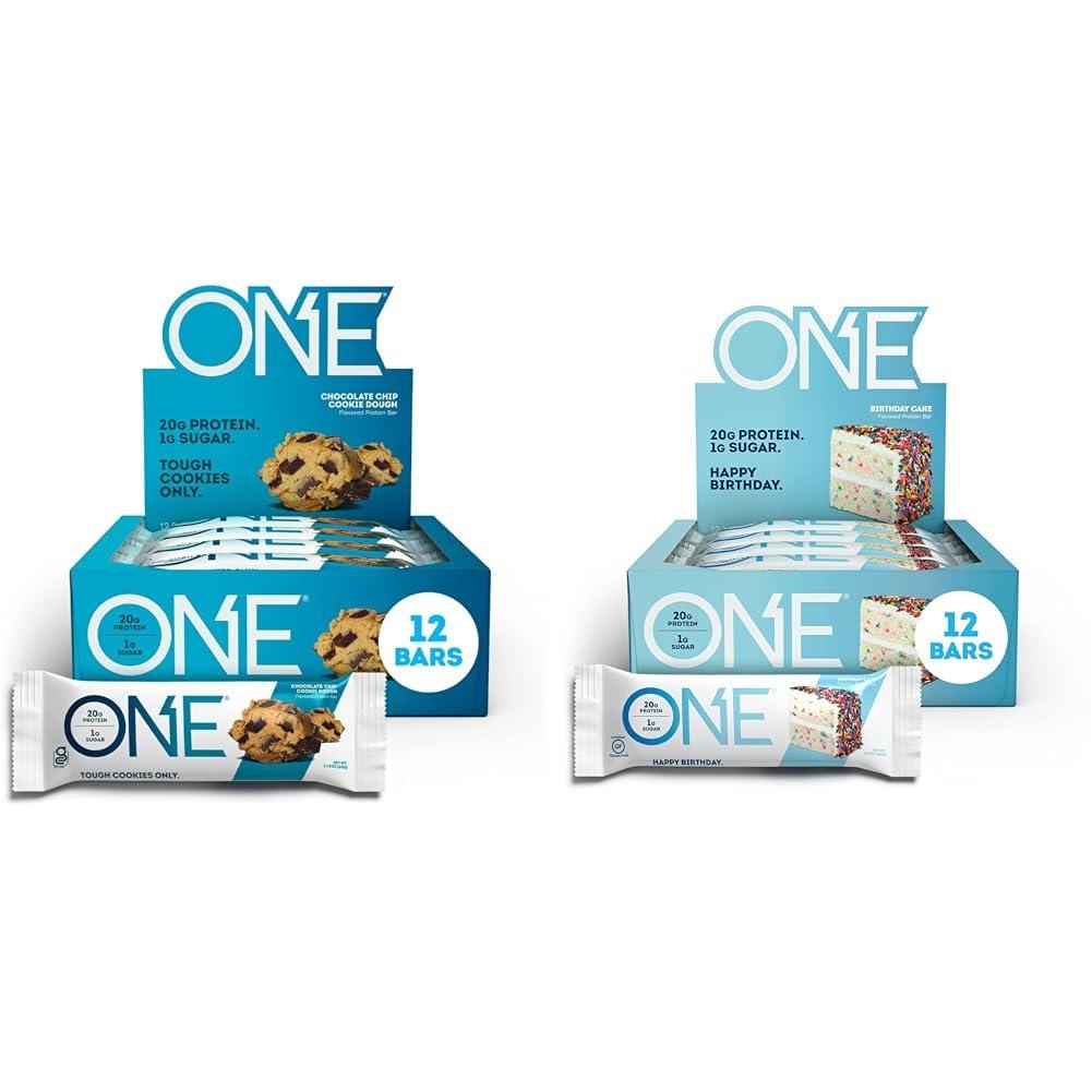 ONE Protein Bars, Chocolate Chip Cookie Dough, Gluten Free Protein Bars with 20g Protein and only 1g Sugar, Guilt-Free Snacking for High Protein Diets, 2.12 oz (12 Pack)